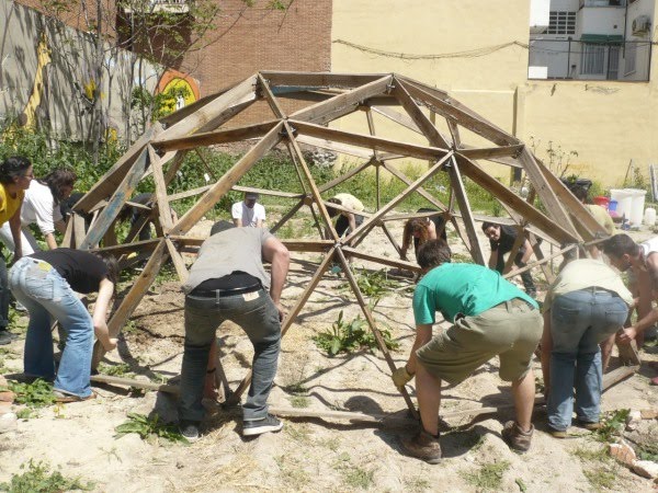 Divertidas imágenes de la reuvicación de la cúpula geodésica, que nos servirá de invernadero.