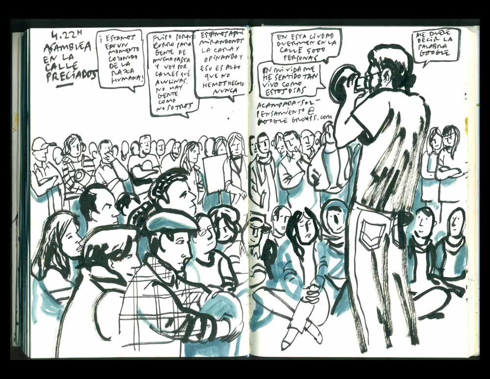 Aprovechando que este fin de semana llegan desde distintos puntos del territorio español las marchas de indignad@s a Madrid, se va a hacer la presentación del libro "Cuaderno Sol", de Enrique Flores. Un cuaderno con ilustraciones que recoge varios momentos del movimiento 15-M y de la acampada en Sol.