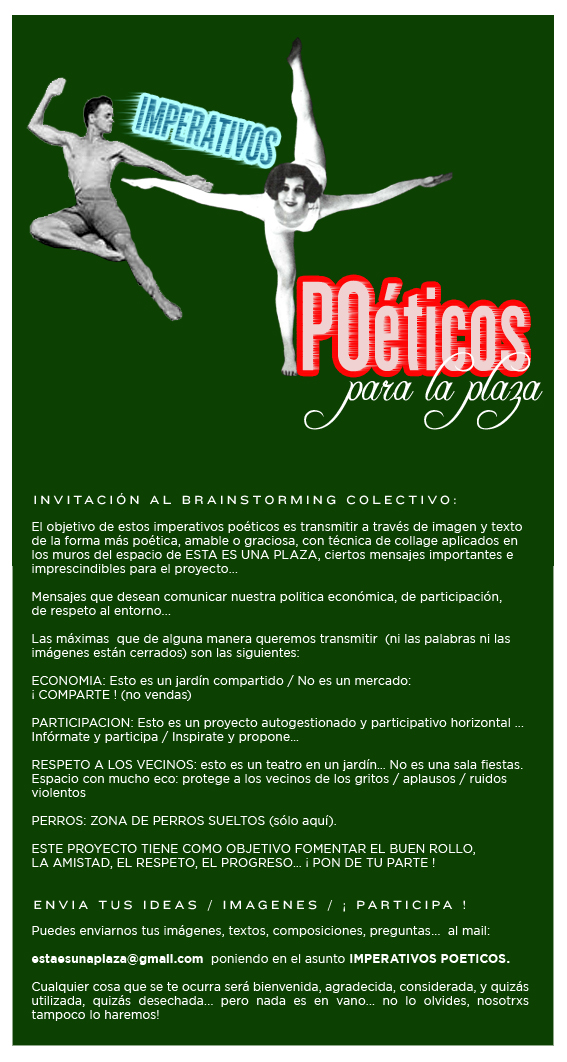 estaesunaplaza@gmail.com poniendo en el asunto IMPERATIVOS POETICOS.