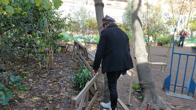 colaborando con los vecinos del Poblado Dirigido de Fuencarral que están plantando en los interbloques de sus barrios .